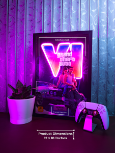 Elevate your gaming setup with the Grand Theft Auto Neon Frame—a bold tribute to one of the most legendary gaming franchises! Featuring a stunning wallpaper that captures the essence of GTA, this frame is illuminated with vibrant neon accents, making it a centerpiece in any gaming room. A metal plate engraved with the game’s iconic release date adds a premium and collectible touch. Whether you’re a longtime fan or just getting into the world of GTA, this frame is the ultimate way to showcase your love for the game while enhancing your space’s vibe! 🚗💨🎮